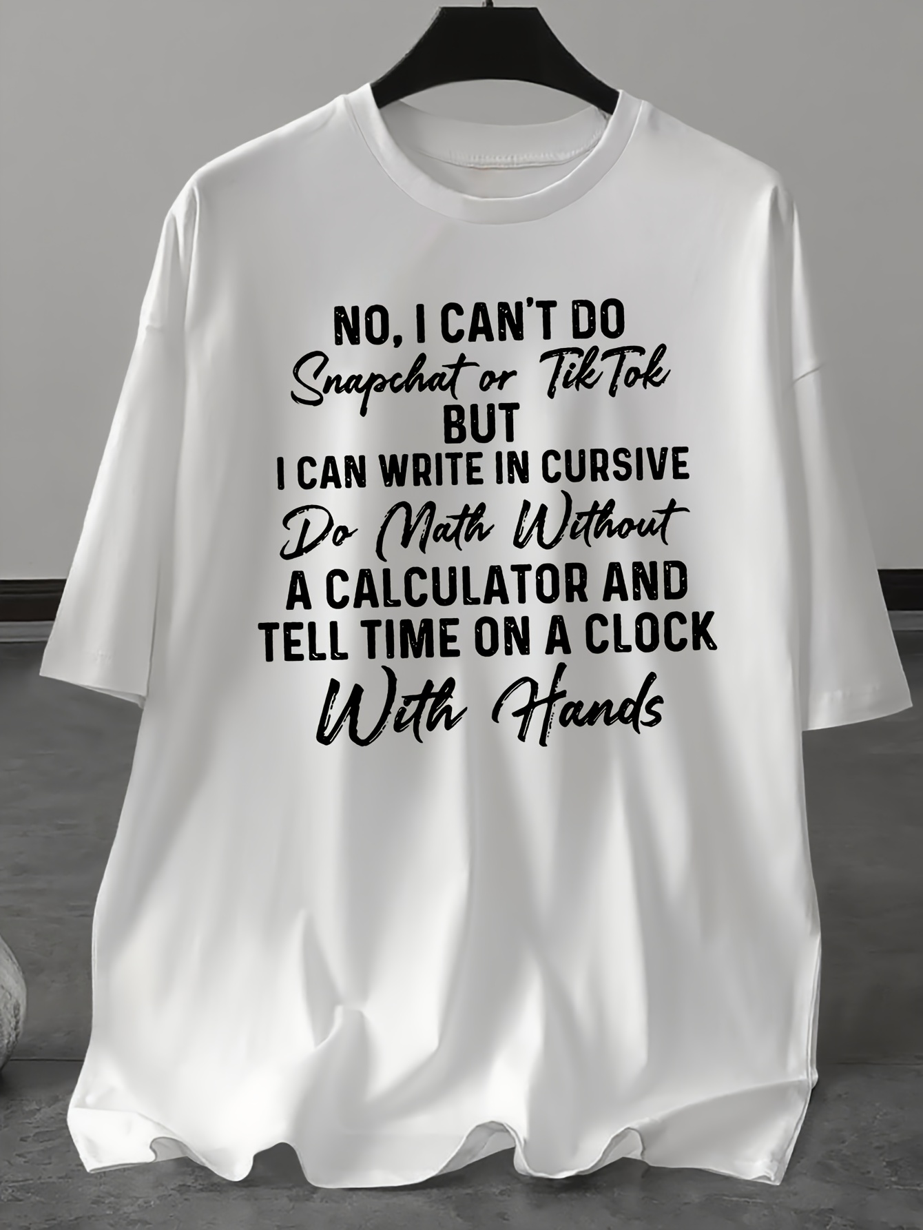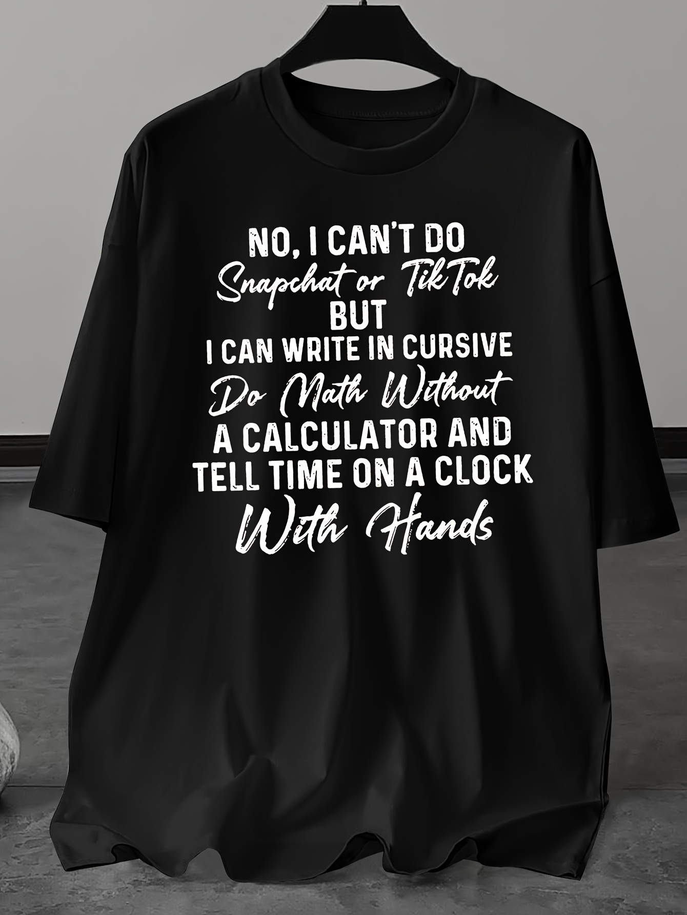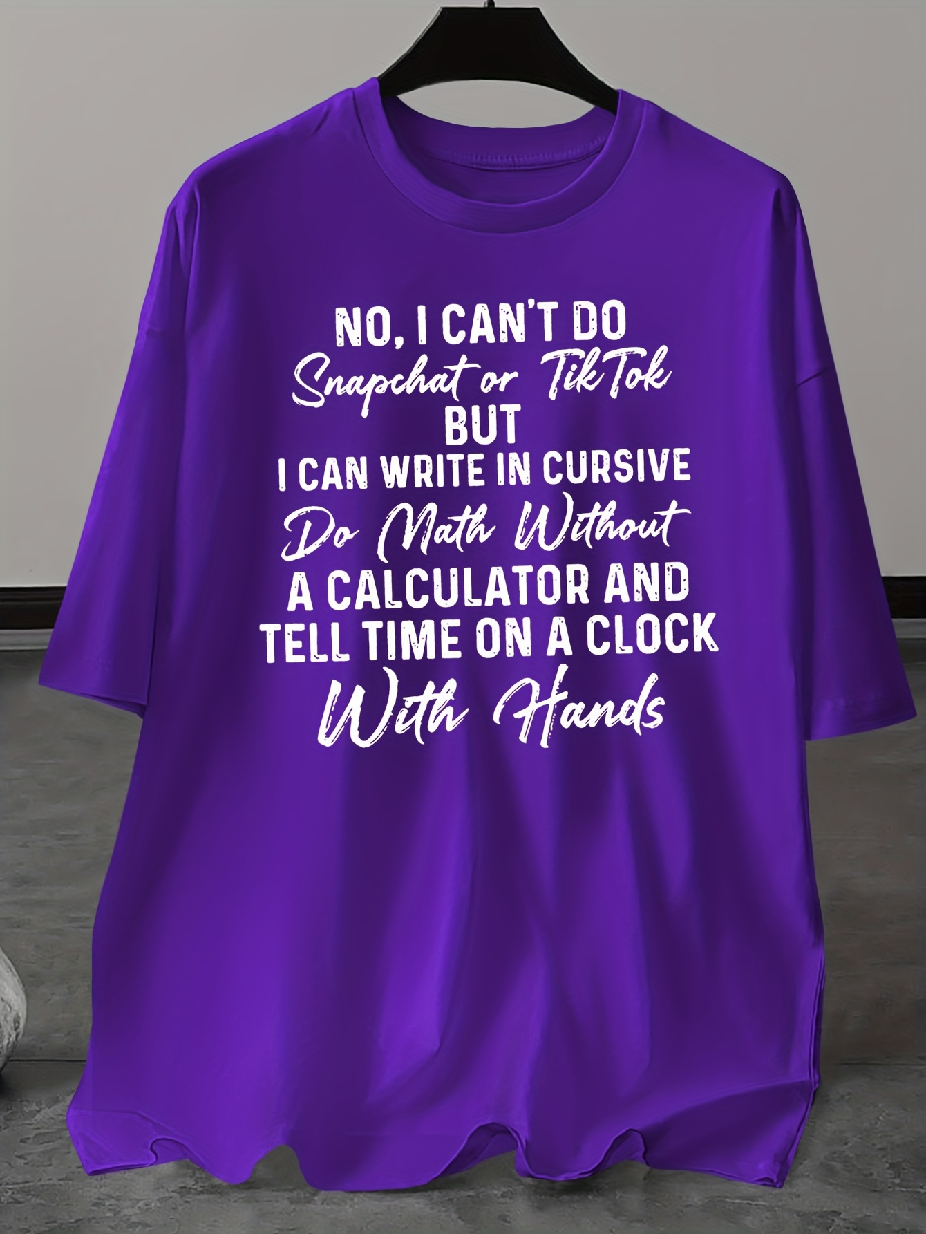 Everyday Style| Men's Plus Size Casual Pink T-Shirt - "No, I Can't Do But I Can Write in Cursive" Quote, Short Sleeve, Round Neck, Polyester, Machine Washable, Everyday T-Shirt| Round Neck Shirt| Polyester Fabric, PLUS SIZE