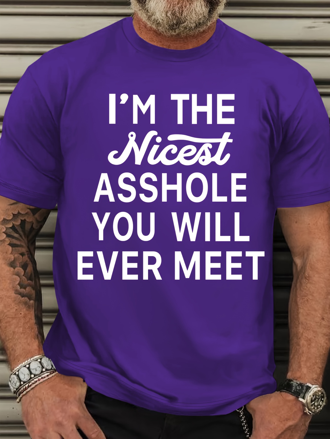 Plus Size Men's Casual Crew Neck T-Shirt with Slight Stretch, 100% Polyester Knit Fabric, Regular Fit Spring/Summer/Fall Tee with Bold Slogan Print