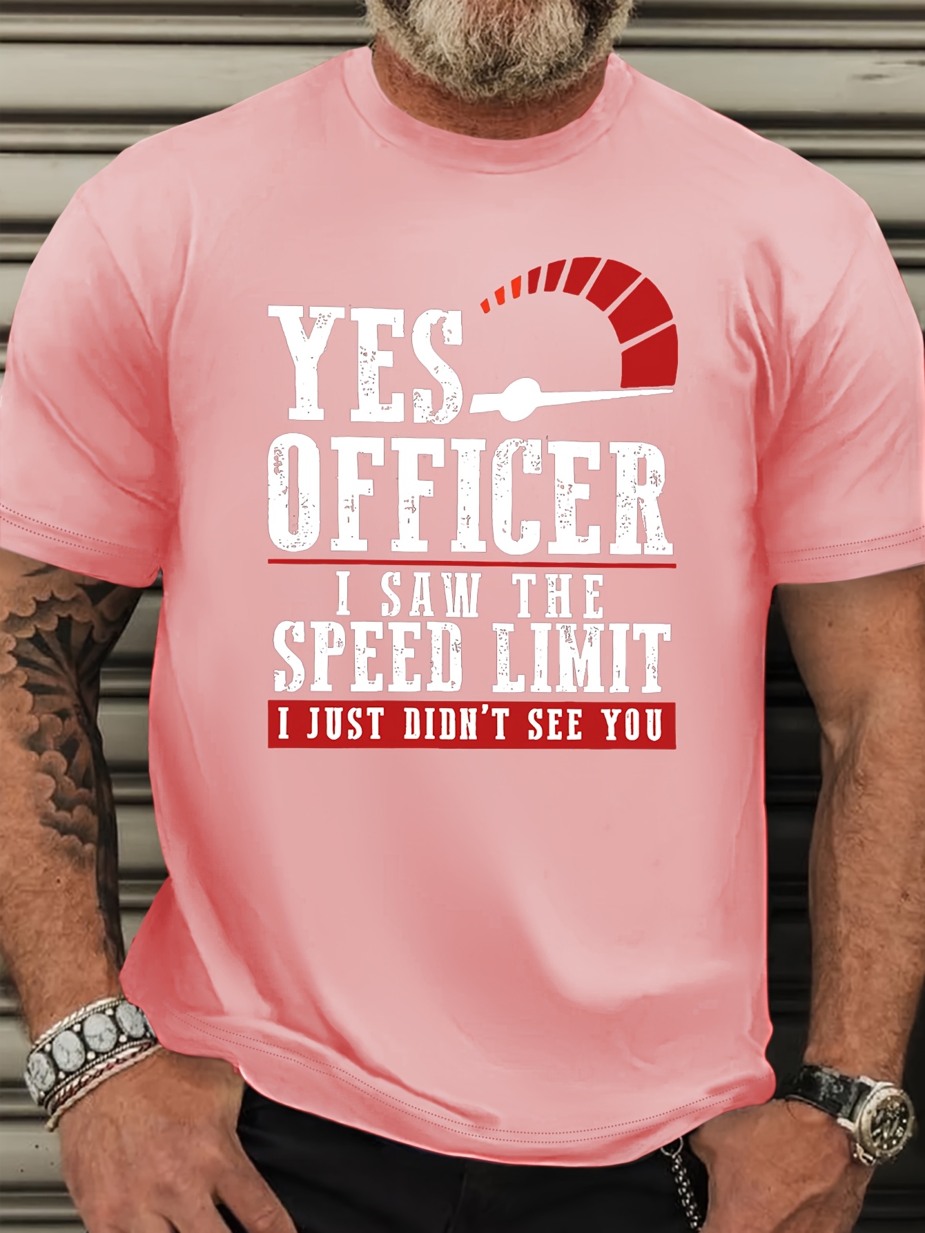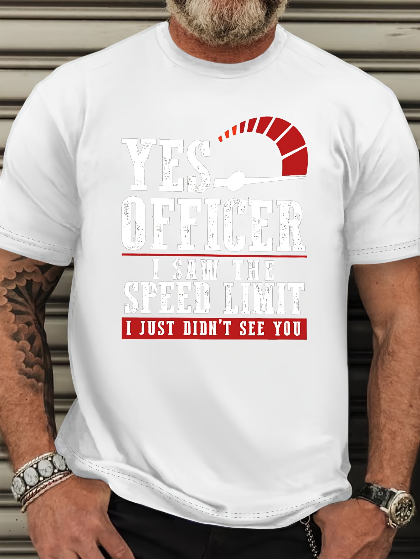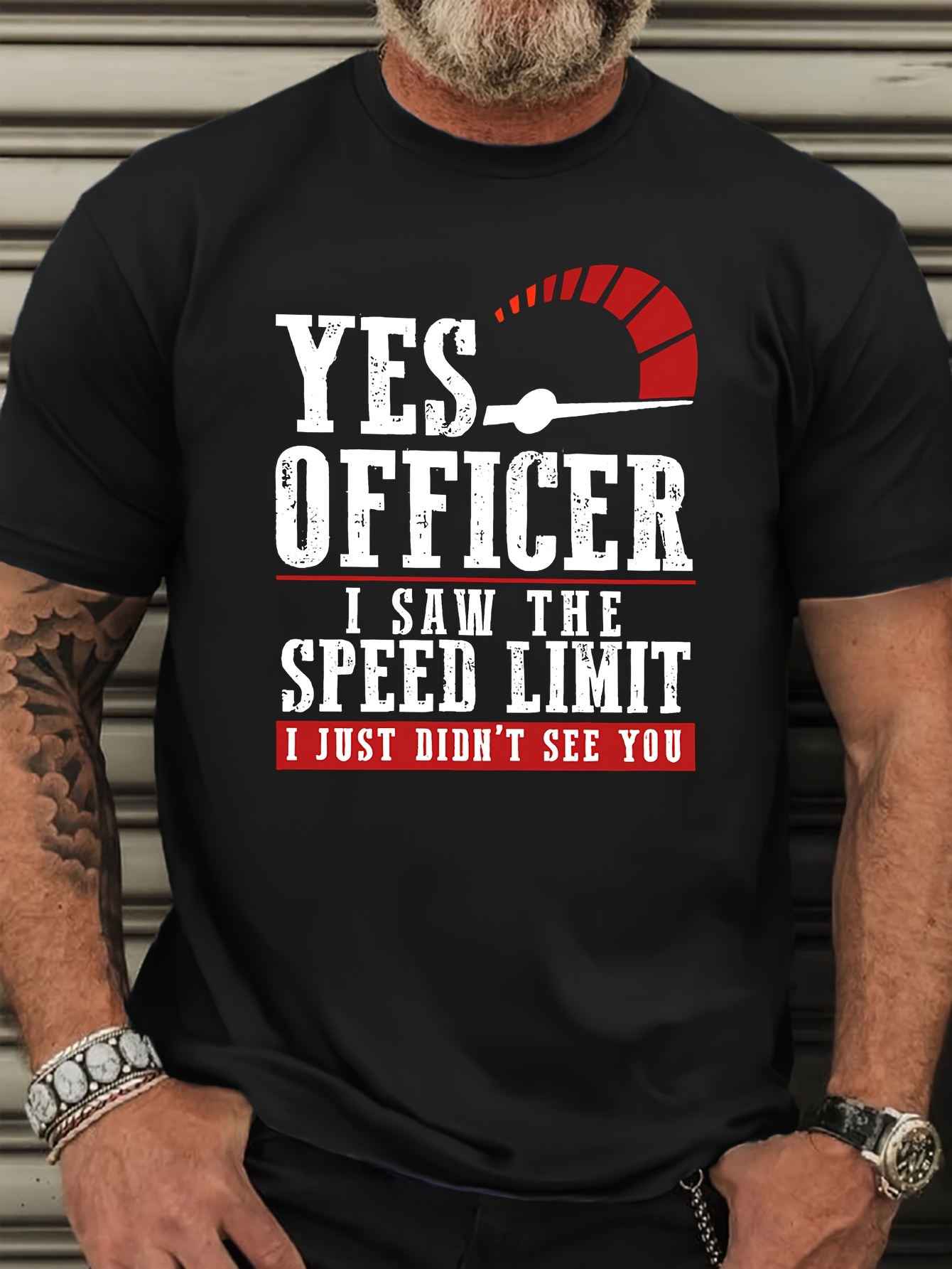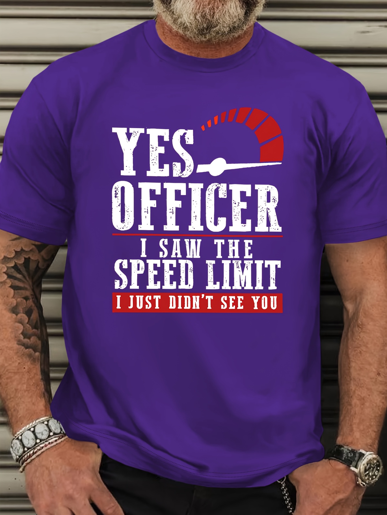 Plus Size Men's Casual Crew Neck T-Shirt - "Yes Officer I Saw The Speed Limit I Just Didn't See You" Short Sleeve, Polyester Knit Fabric with Slight Stretch, Regular Fit, Summer Alphabet Pattern Tee