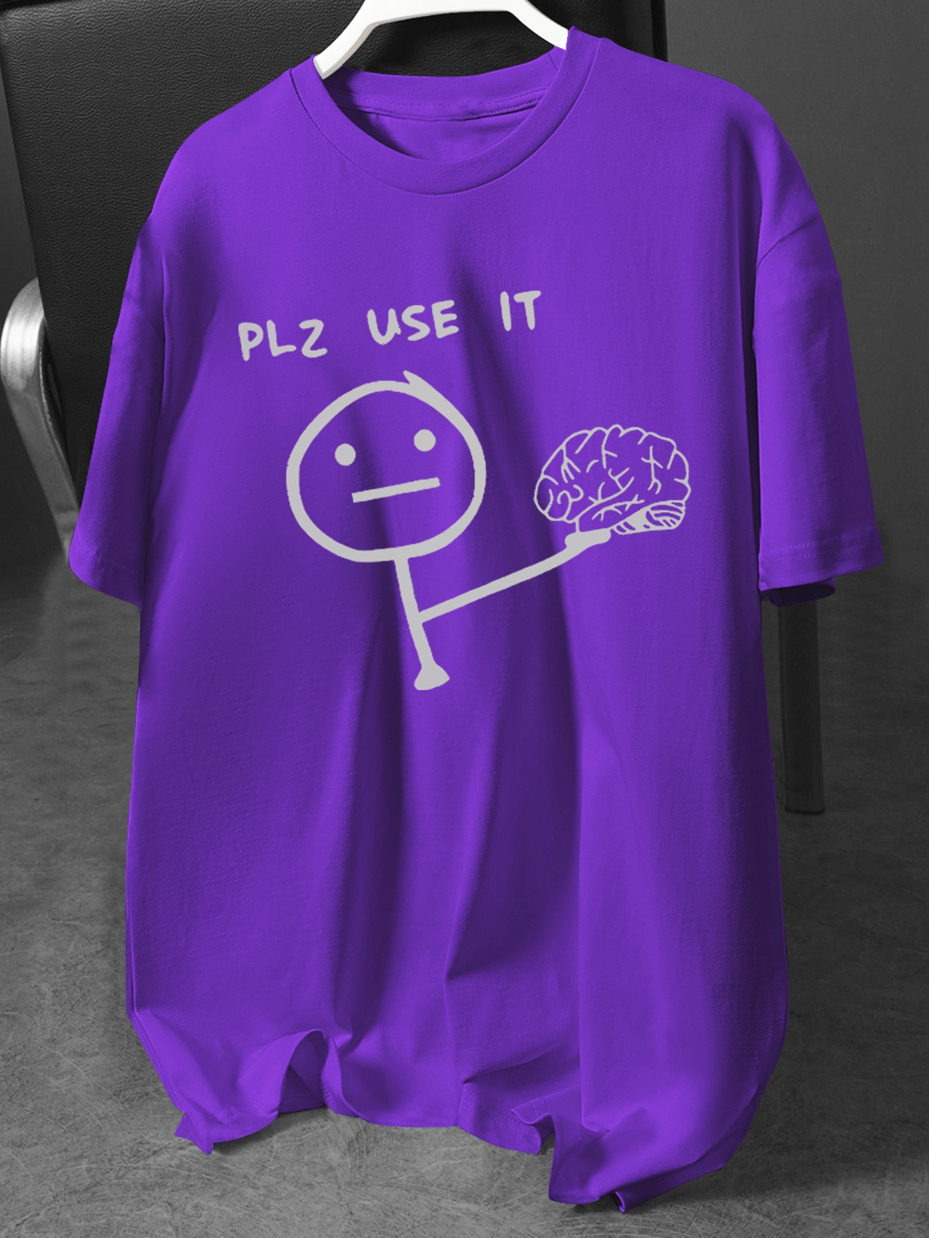 Men's Plus Size Funny T-Shirt - "PLZ USE IT" Doodle Graphic Tee| Short Sleeve Casual Streetwear Top| Soft Comfortable Fabric, Summer Outfit, Couples Matching, Creative Print, Big & Tall Men, Plus Size