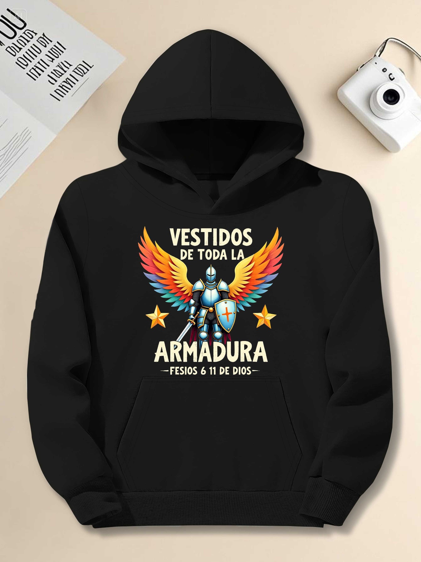 Men's Plus Size Spanish Knight Armor Hooded Sweatshirt - Medieval-Themed Oversized Hoodie with Knight & Sword Print, Latin Phrases (Vestidos un verdadero), Green Casual Costume Apparel for Renaissance Fairs & Themed Events, PLUS SIZE