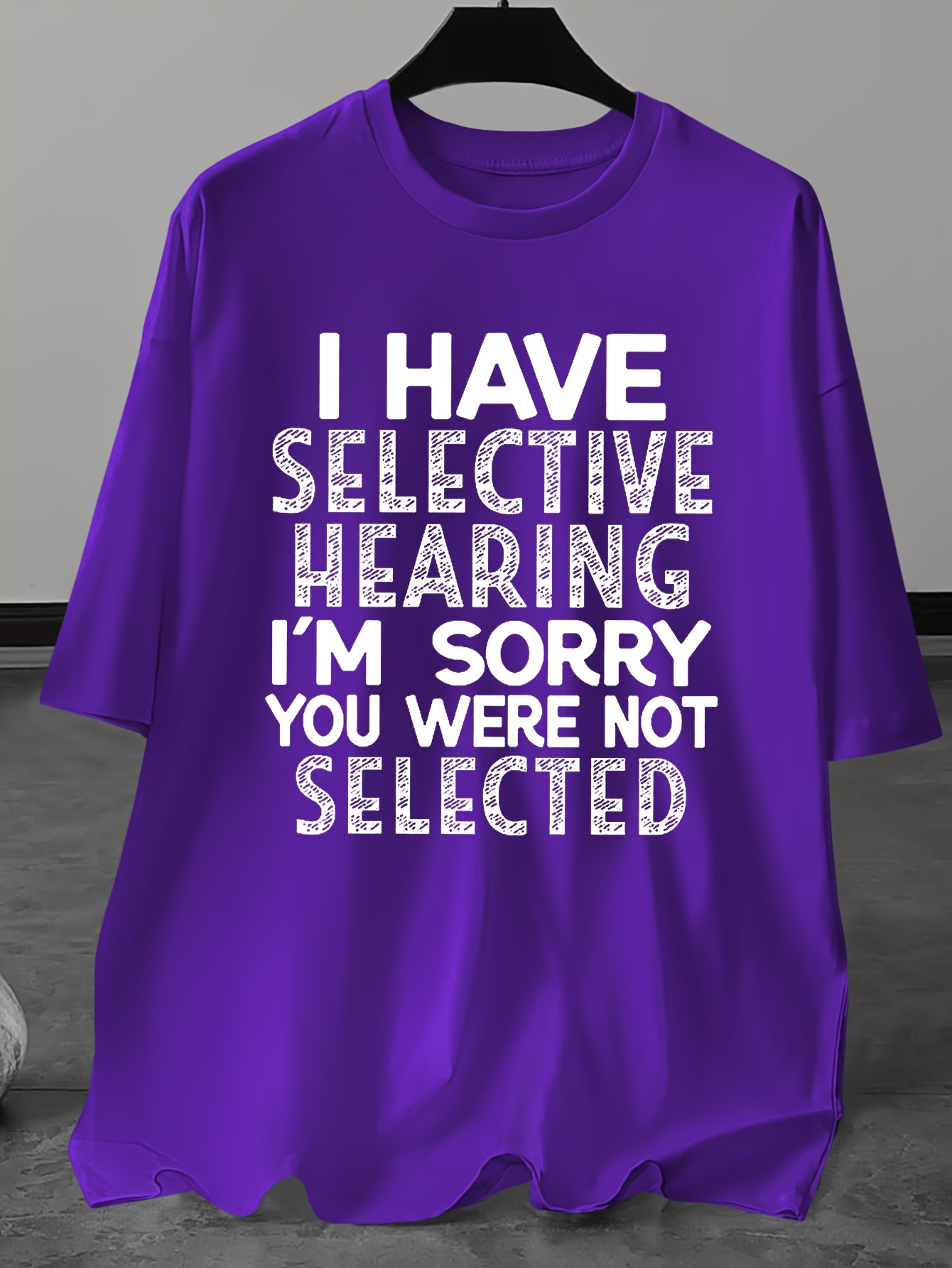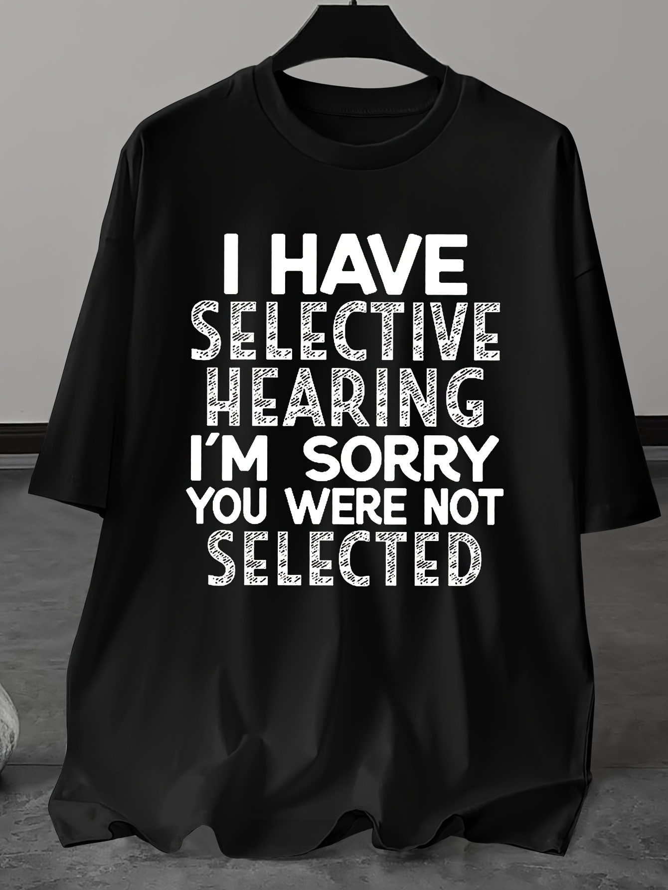 Plus Size Men's Casual Round Neck "I Have Selective Hearing Im Sorry You Were Not Selected" Short Sleeve T-Shirt