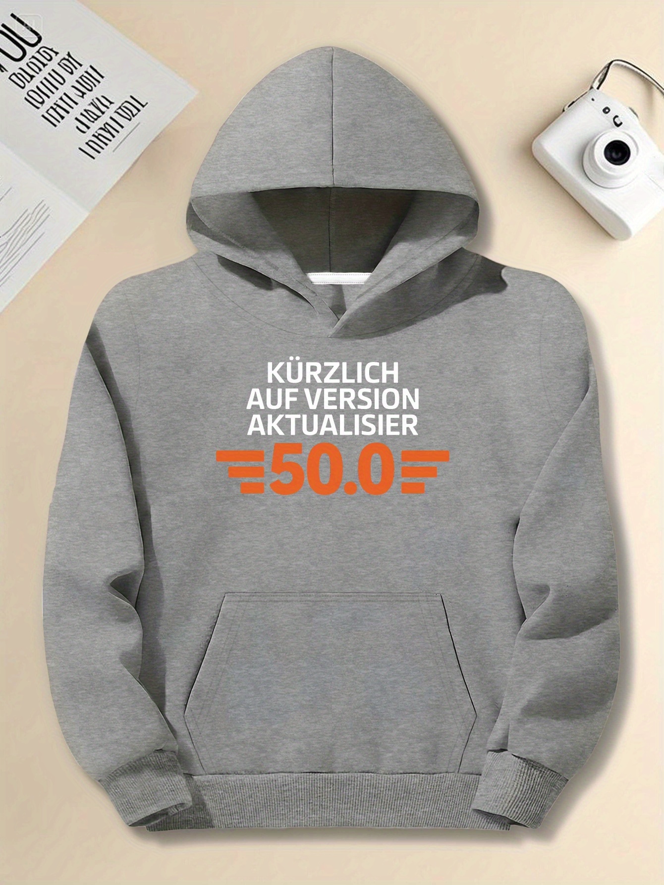Plus Size Men's German-Inspired Graphic Print Hooded Sweatshirt - 100% Polyester Lightweight 250gsm, Loose Fit Casual Pullover with Kangaroo Pocket, Machine Washable Black Streetwear, PLUS SIZE